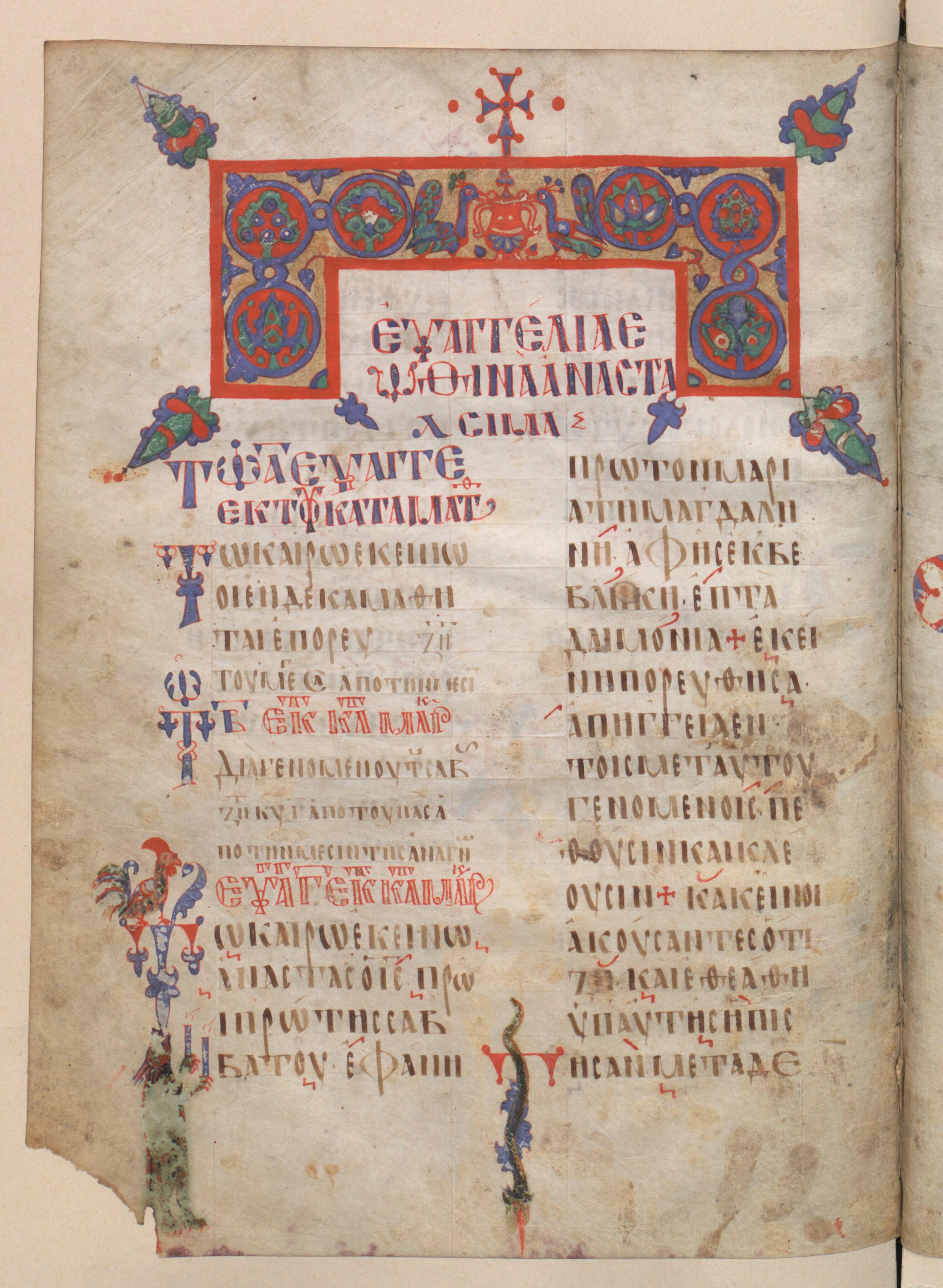 Lectionnaire grec, frontispice des Évangiles de la Résurrection, Paris, BnF, ms. grec 277, f. 80v