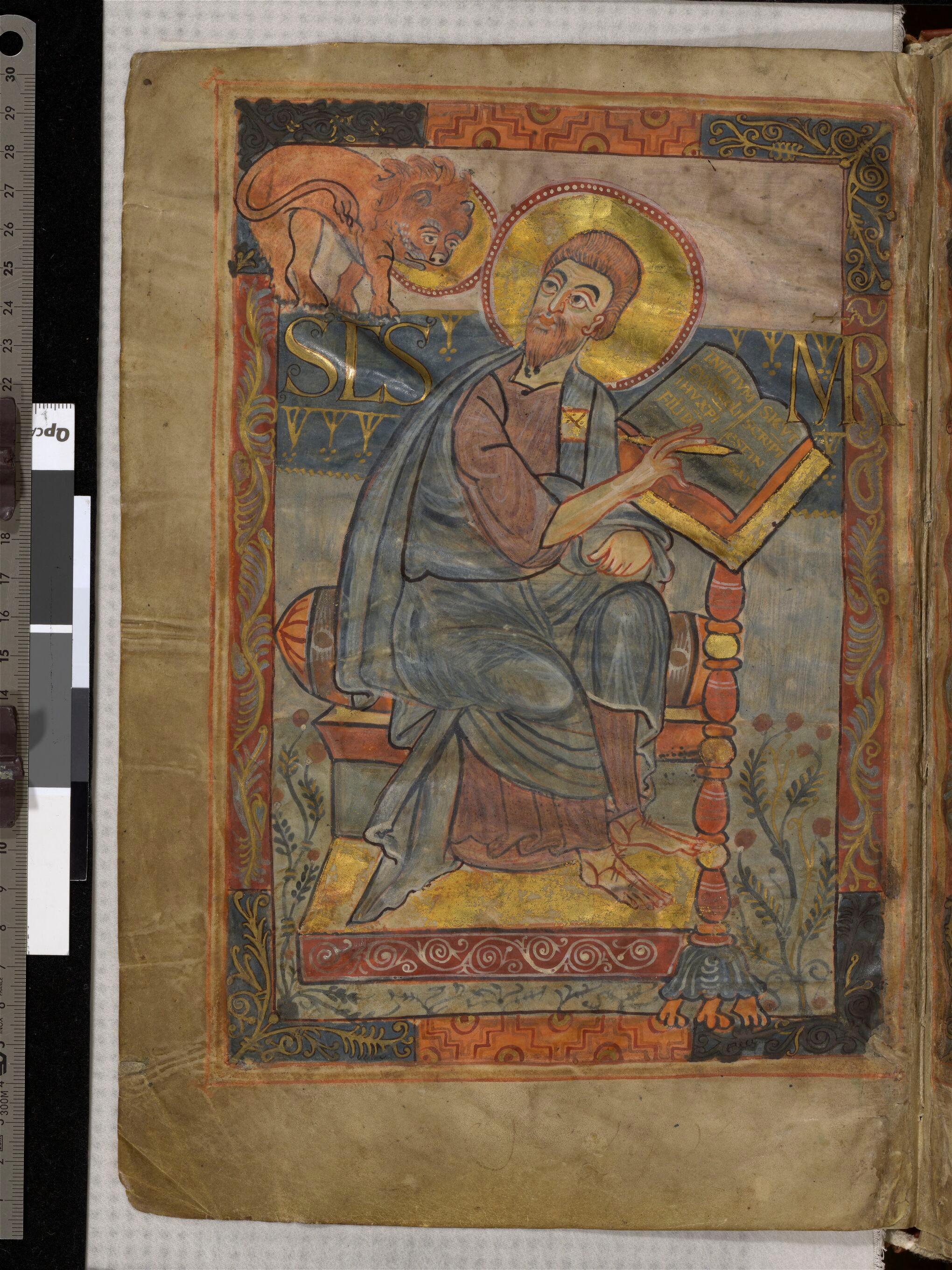 - Evangéliaire de Charlemagne, Saint Marc écrivant, Paris, BnF, NAL 1203, f.1v