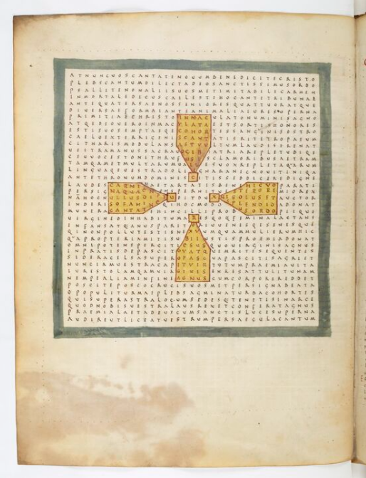 - Abbaye de Fulda Vers 650 - 1791, Raban Maur, Louanges à la sainte croix, Croix, symbole des élus, Paris, BnF Latin 2422, f. 25v, manuscrit (Après 822 - Avant 845 / 847)