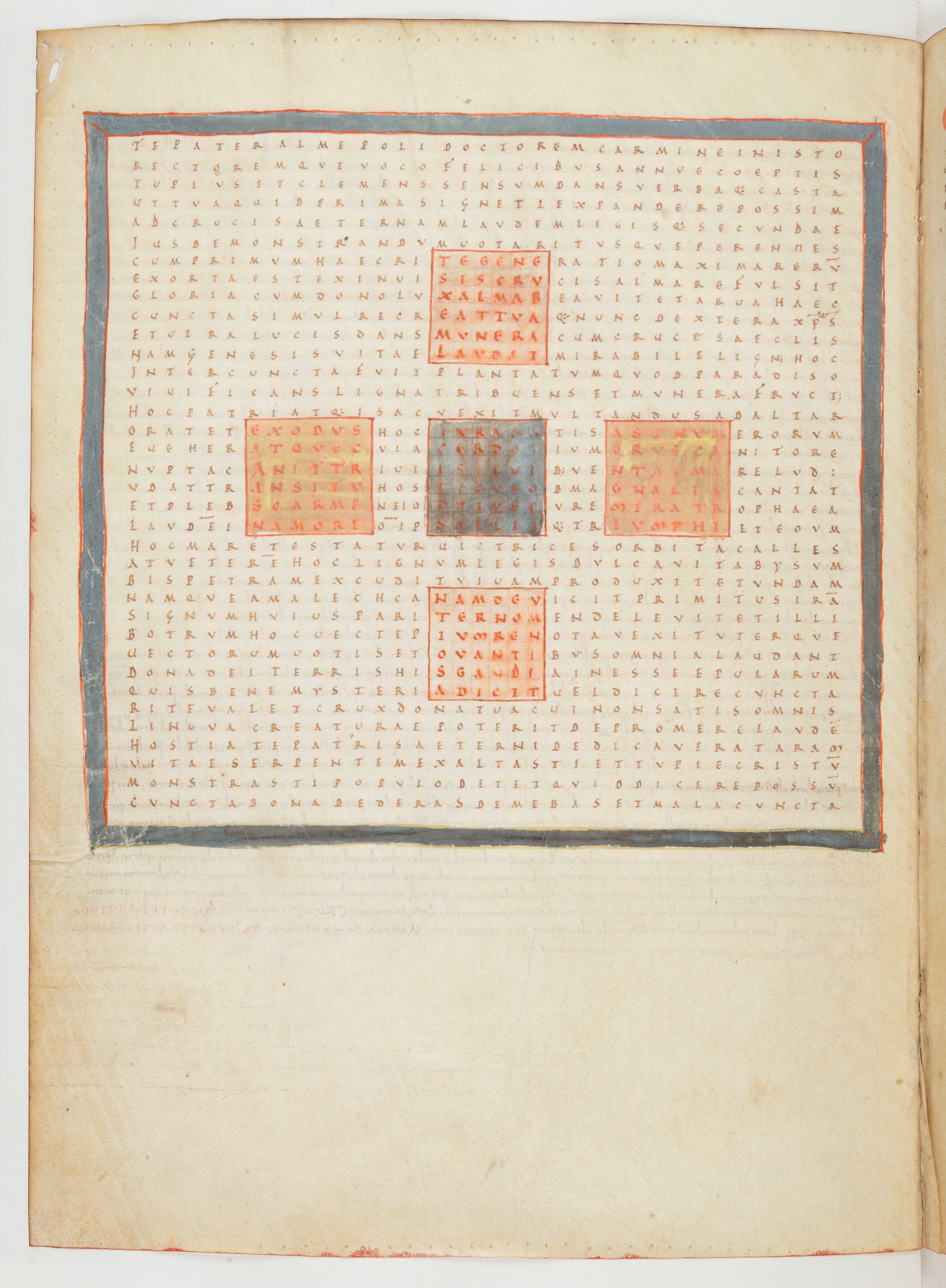 - Abbaye de Fulda Vers 650 - 1791, copié d'après, Raban Maur, Louanges à la sainte croix, Croix, symbole du pentateuque, Paris, BnF Latin 2421, f.14v, enluminure (3e quart du 10e siècle - 1er quart du 11e siècle)