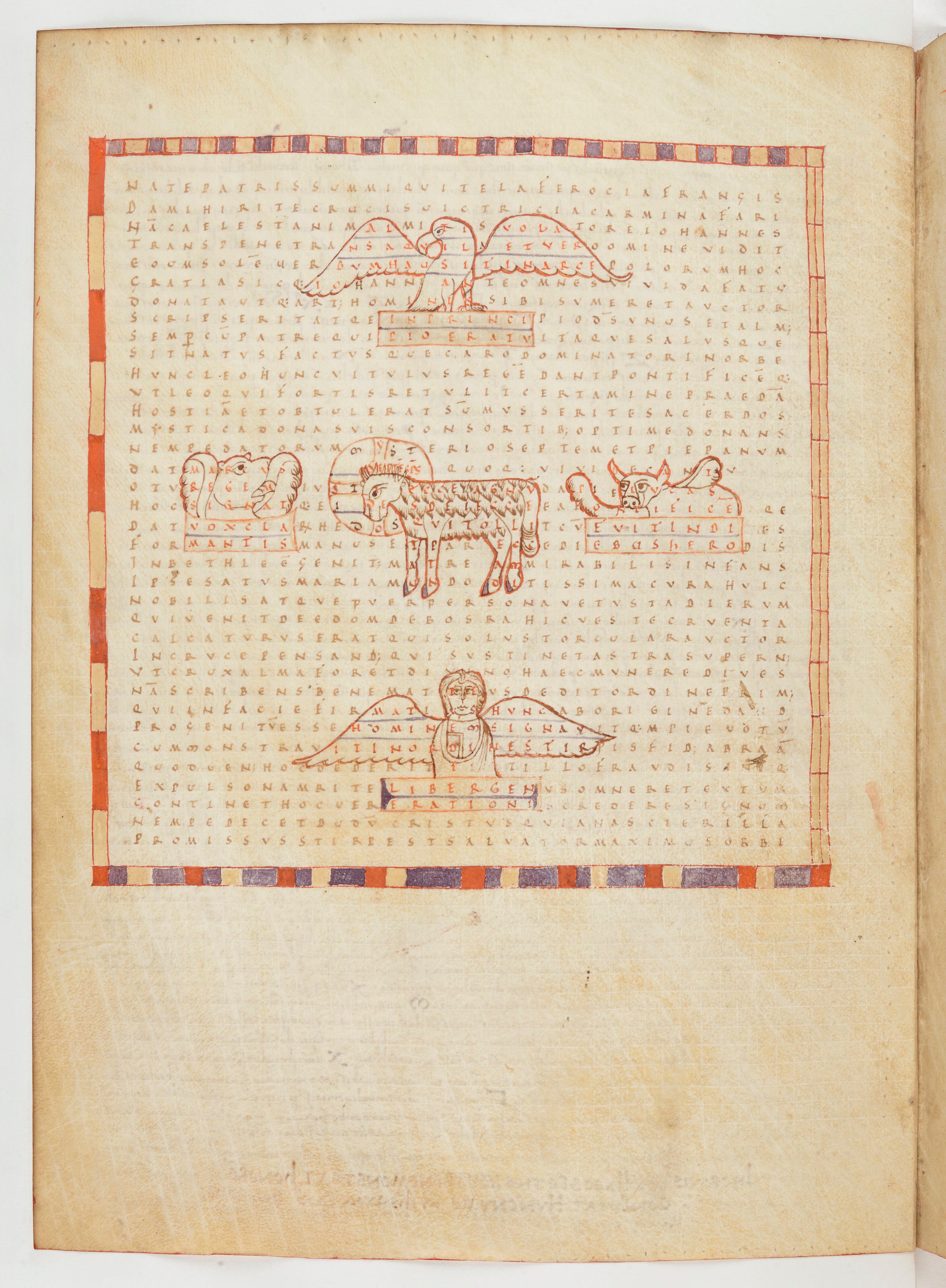 Raban Maur, Louanges à la sainte croix, Croix, symbole des évangiles, Paris, BnF Latin 2421, f.18v