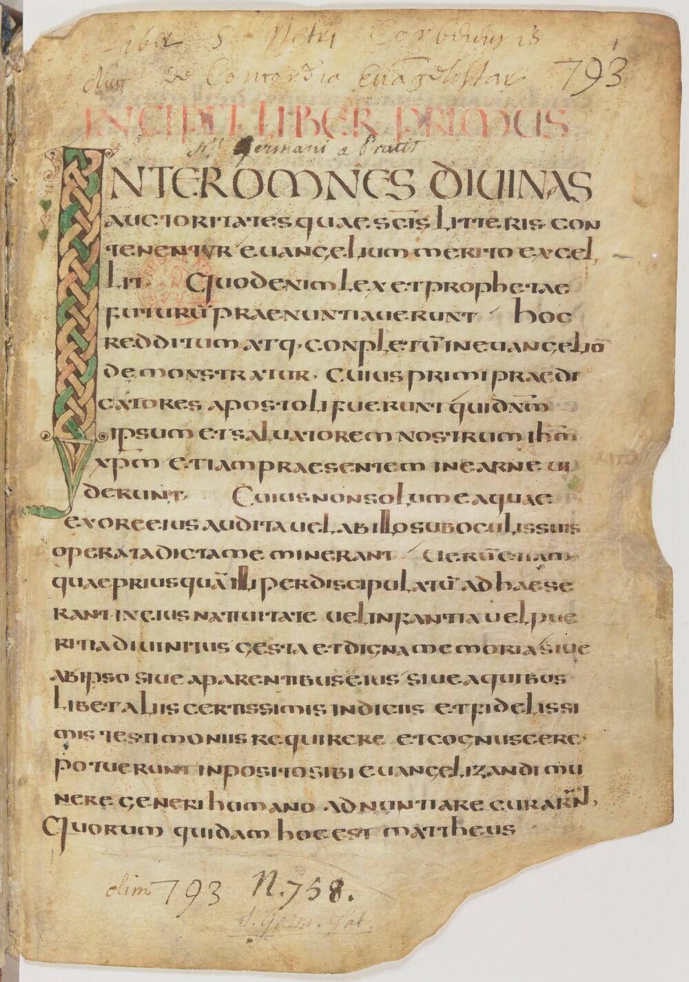 - De concordia evangelistarum, Initiale Interomnes, Paris, BnF, Latin 12190, f.1r