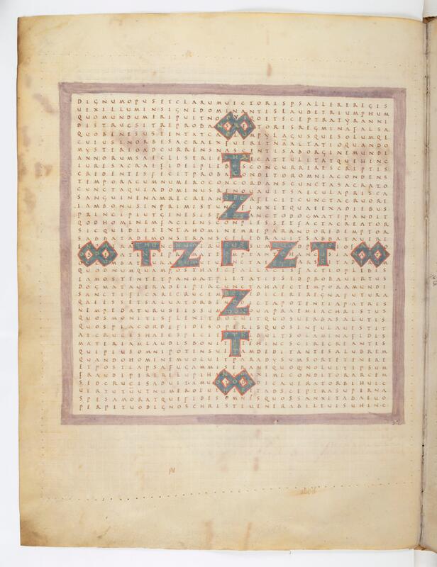 - Abbaye de Fulda Vers 650 - 1791, Raban Maur, Louanges à la sainte croix, Croix, symbole du triomphe de la foi, Paris, BnF Latin 2422, f. 16v, manuscrit (Après 822 - Avant 845 / 847)