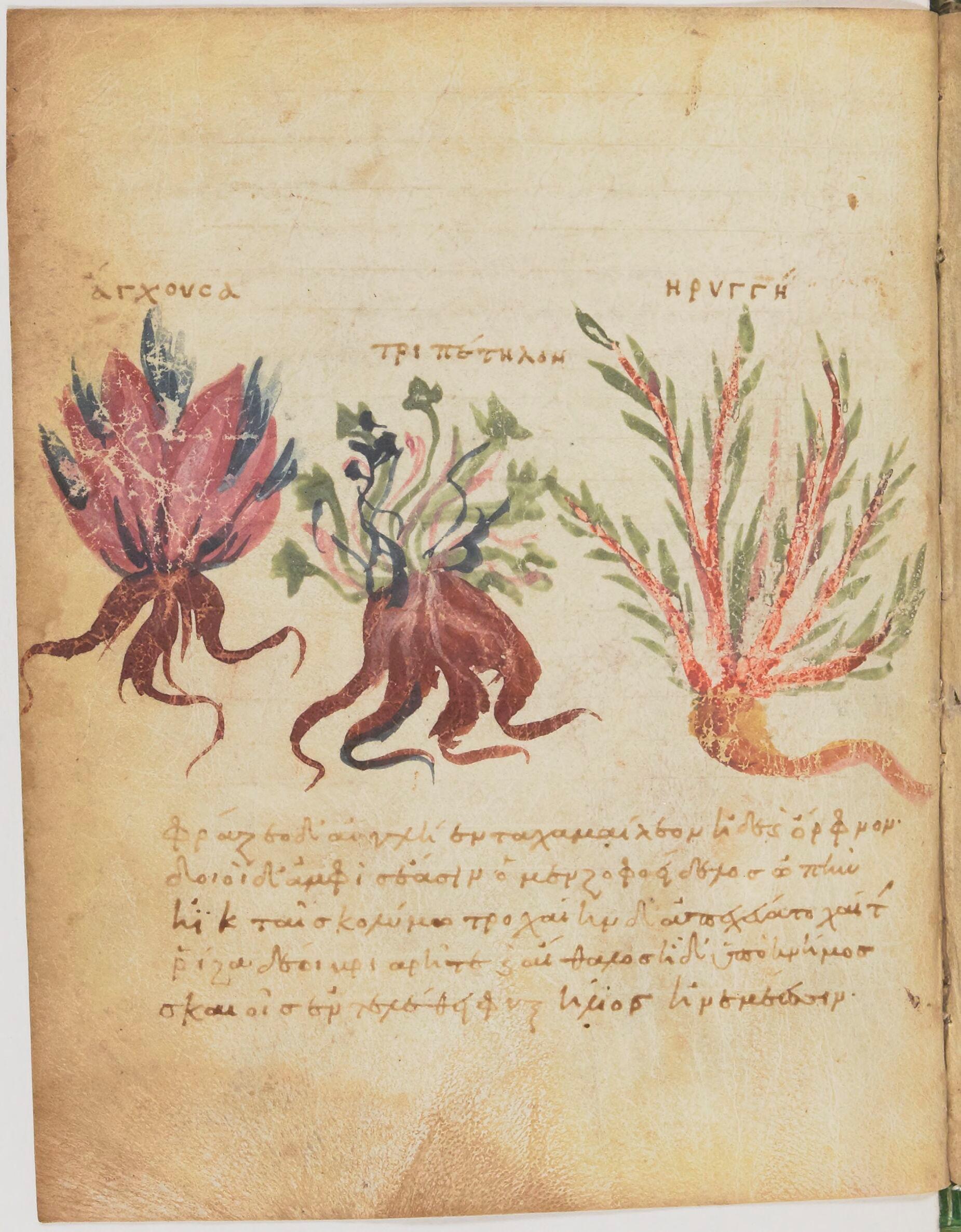 - Nicandre, Thériaques et Alexipharmaques, orcanette, trèfle et panicaut, Paris, BnF, ms. supplément grec 247, f. 19v
