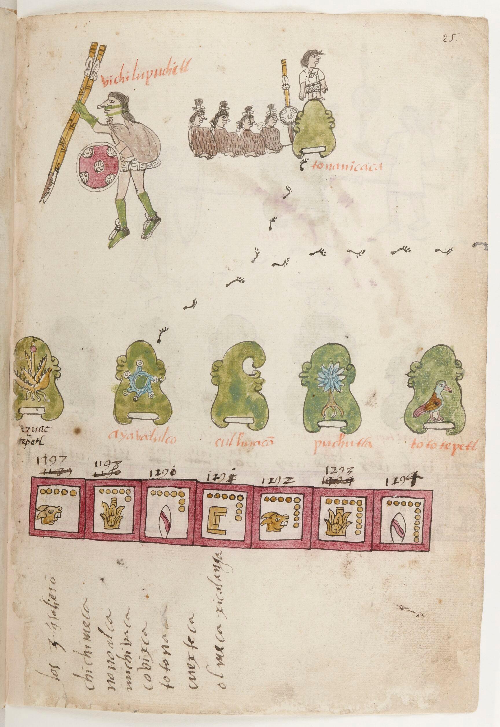 Codex Telleriano-Remensis, Migration des Mexihcah, Paris, BnF, Mexicain 385, f.25r