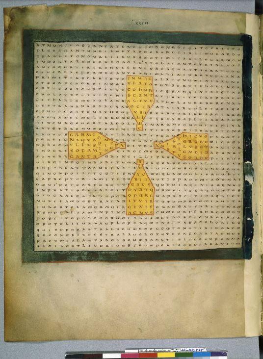 - Raban Maur, Louanges de la Sainte Croix, Croix, symbole des élus, Paris, BnF, Latin 2423, f. 27v