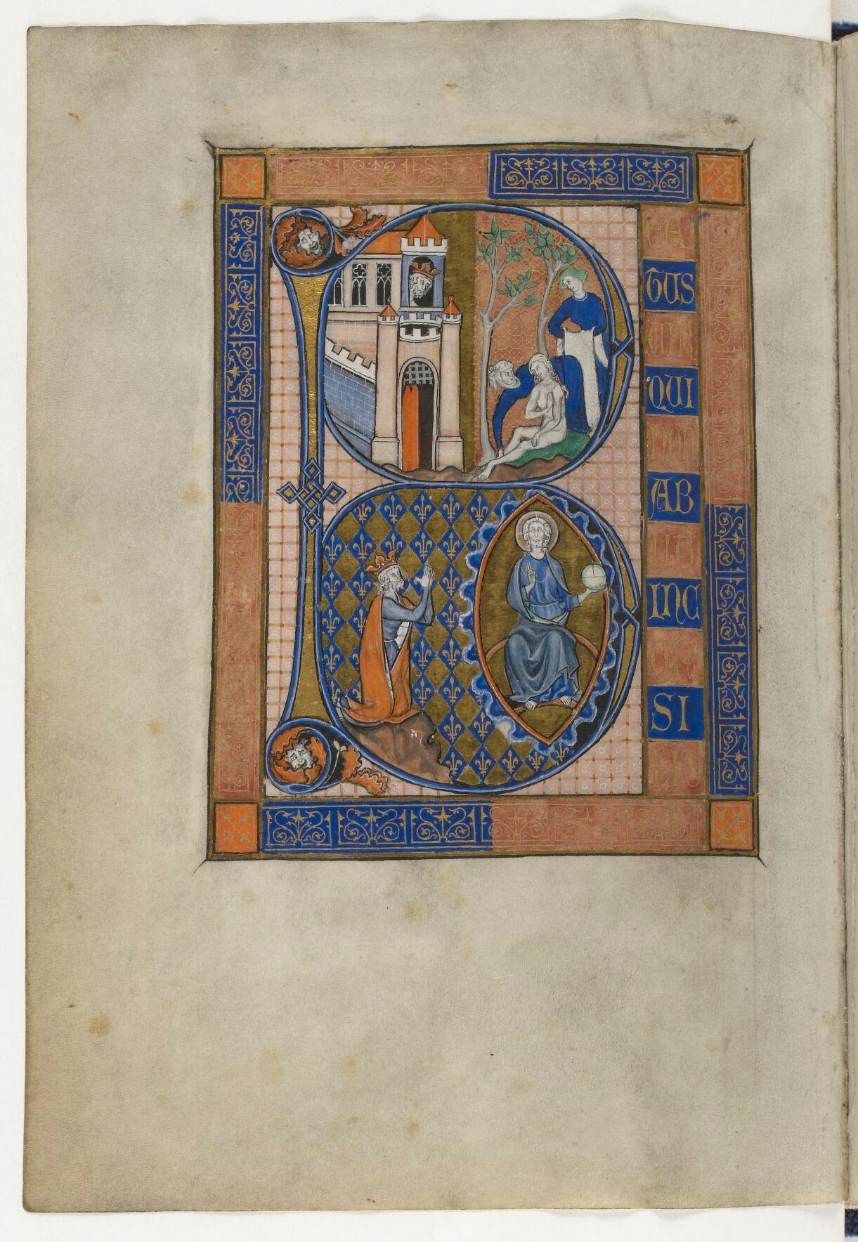 Psautier de saint Louis, Psaumes initiale historiée B, Paris, BnF, Latin 10525, f.85v
