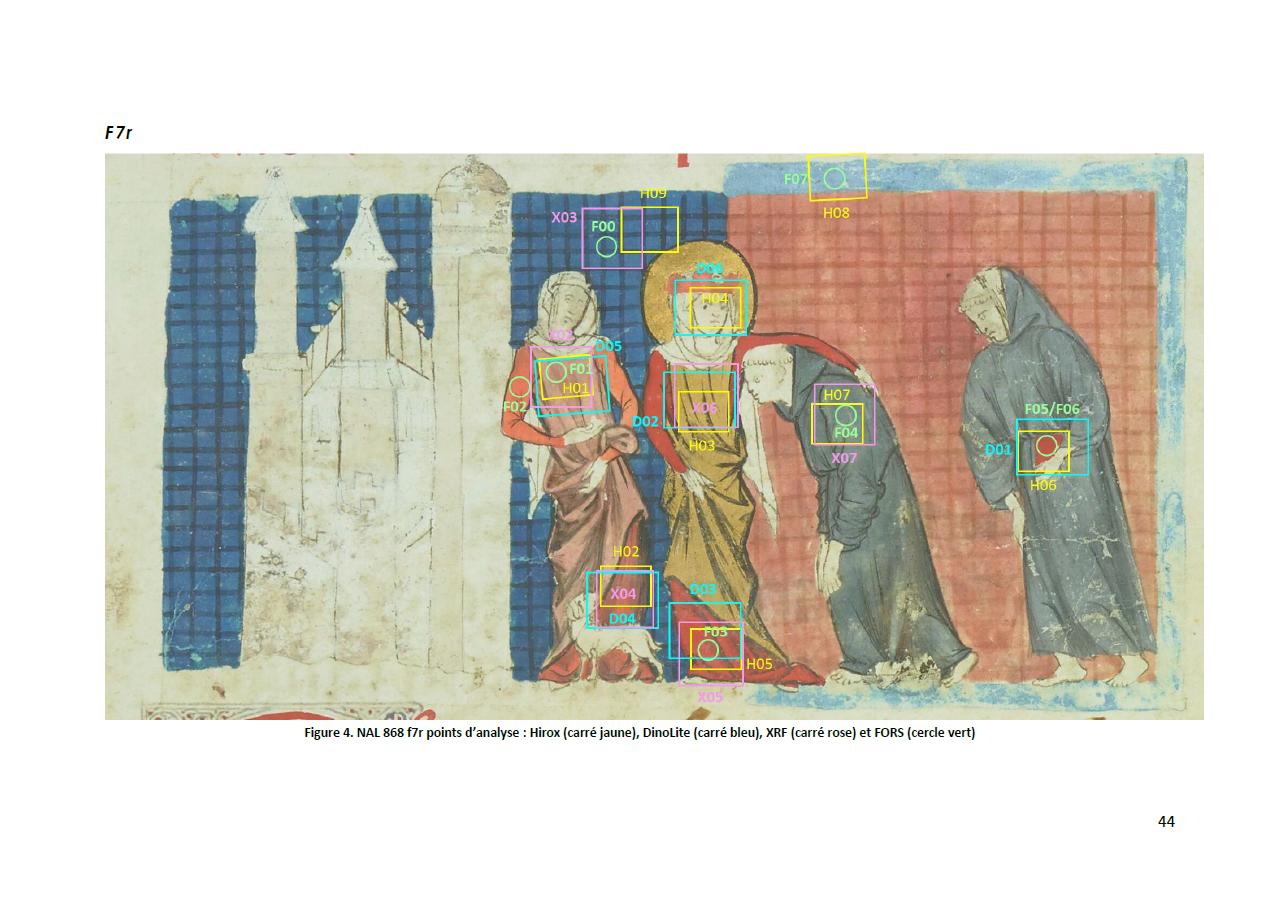 - Vie et office de sainte Élizabeth de Thuringe, ou de Hongrie, Sainte Élizabeth de Thuringe et franciscains, Paris, BnF, NAL 868, f.7r - bleu foncé, bleu - Couche colorée - couche picturale