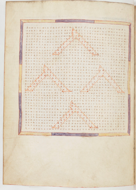 - Abbaye de Fulda Vers 650 - 1791, copié d'après, Raban Maur, Louanges à la sainte croix, Croix, symbole du royaume des cieux, Paris, BnF Latin 2421, f.23v, enluminure (3e quart du 10e siècle - 1er quart du 11e siècle)