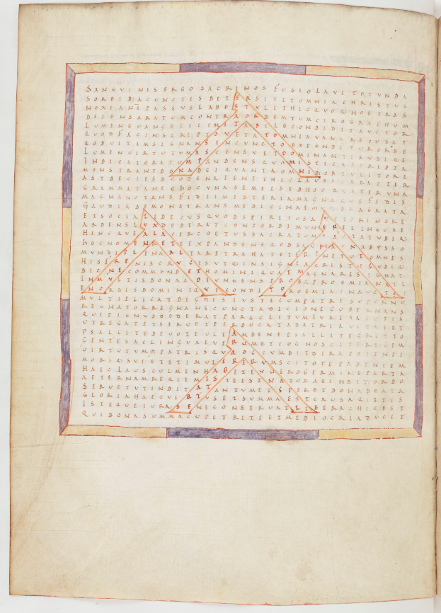 - Raban Maur, Louanges à la sainte croix, Croix, symbole du royaume des cieux, Paris, BnF Latin 2421, f.23v - violet - Couche colorée - couche picturale