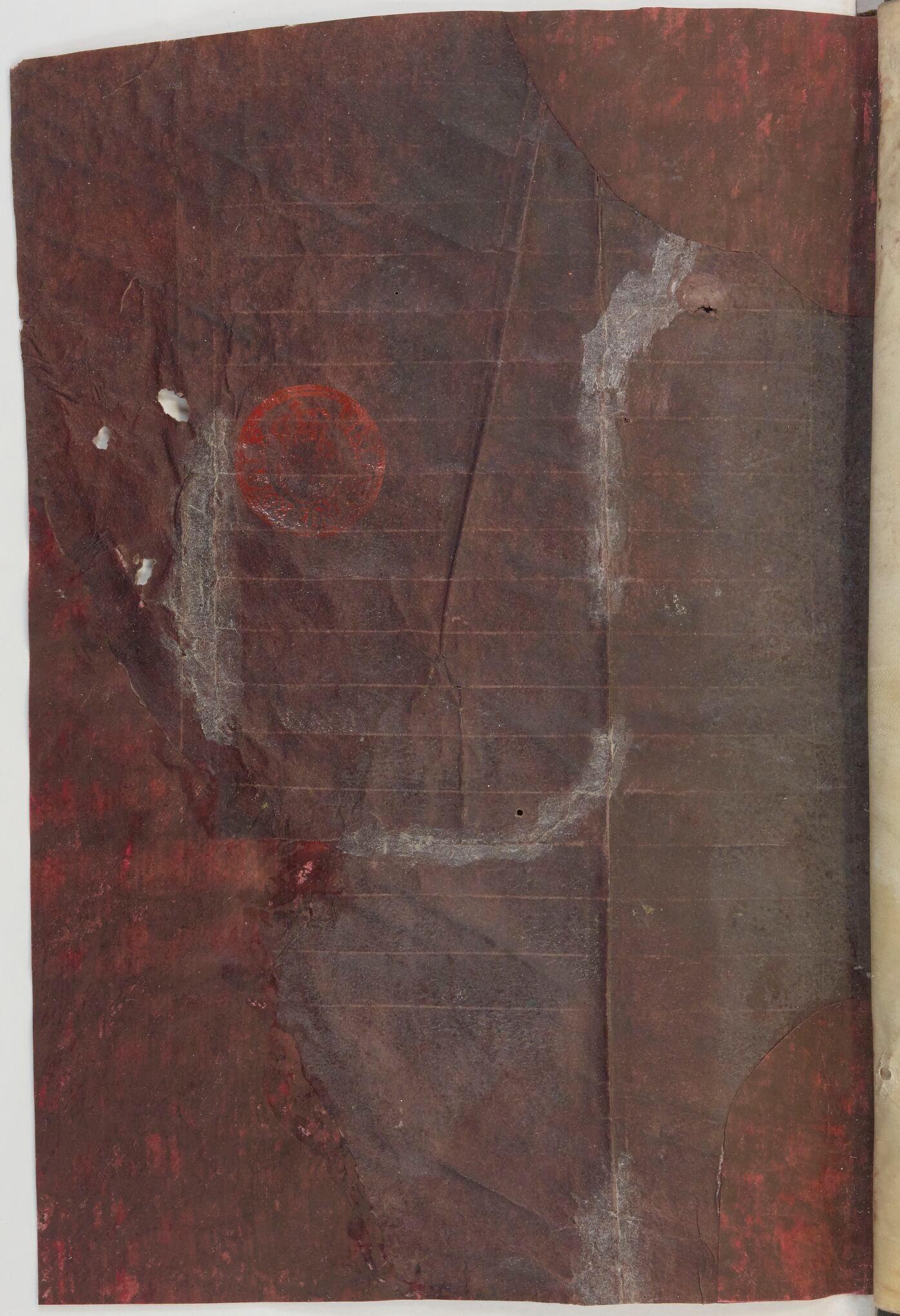 - Nivardus 11e siècle - , attribué à, Évangéliaire de Gaignières, Page avec réparation de parchemin coloré, BnF, Latin 1126, f. 66v, enluminure (Vers 1er quart du 11e siècle - )