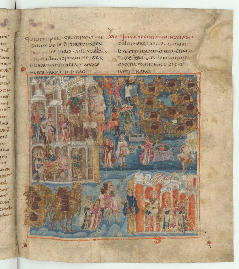 Pentateuque dit d’Ashburnham ou de Tours, Éliézer et Rébecca, Paris, BnF, NAL 2334, f.21r