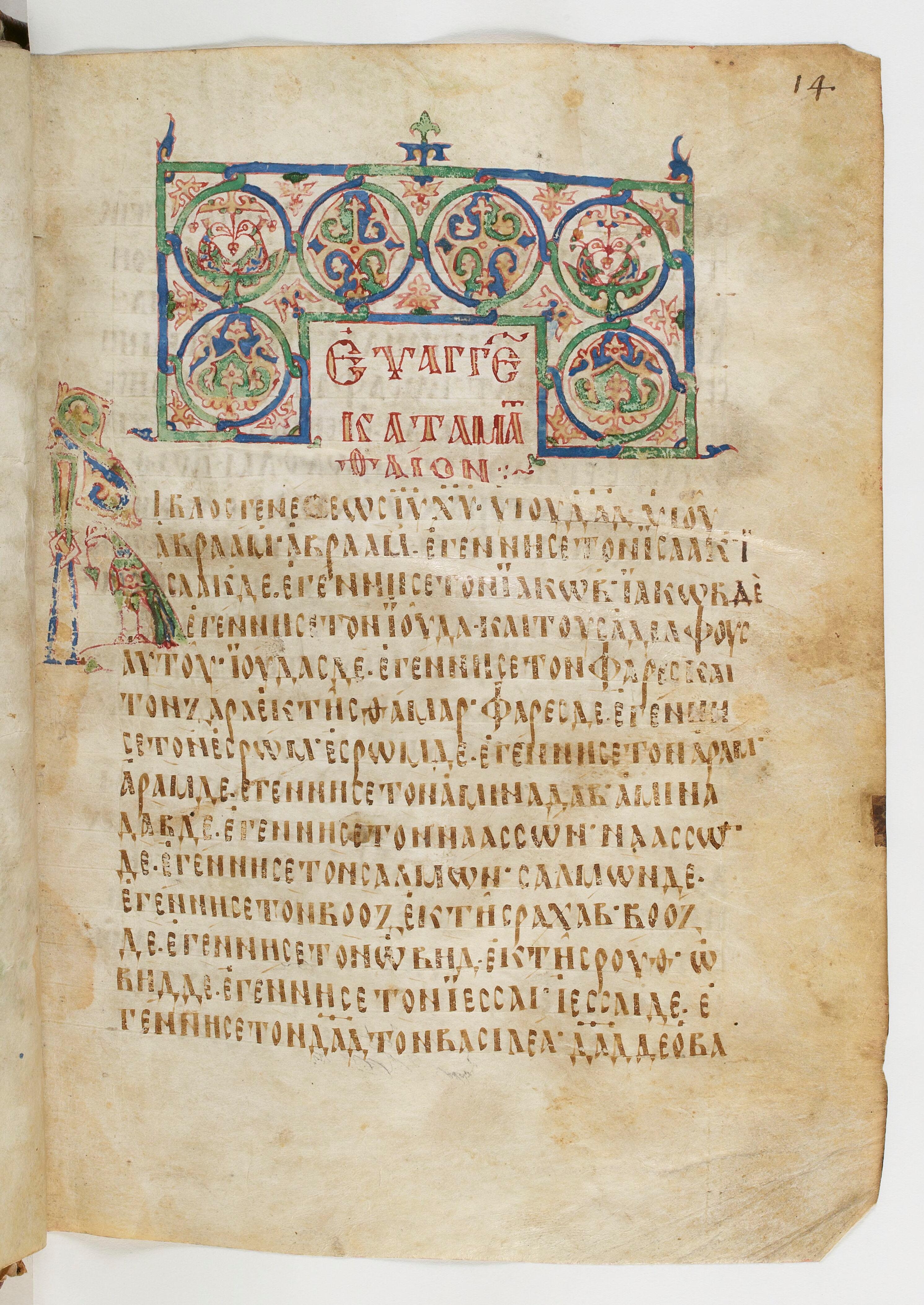 Tétraévangile grec, frontispice de Matthieu, Paris, BnF, ms. grec 63, f. 14r