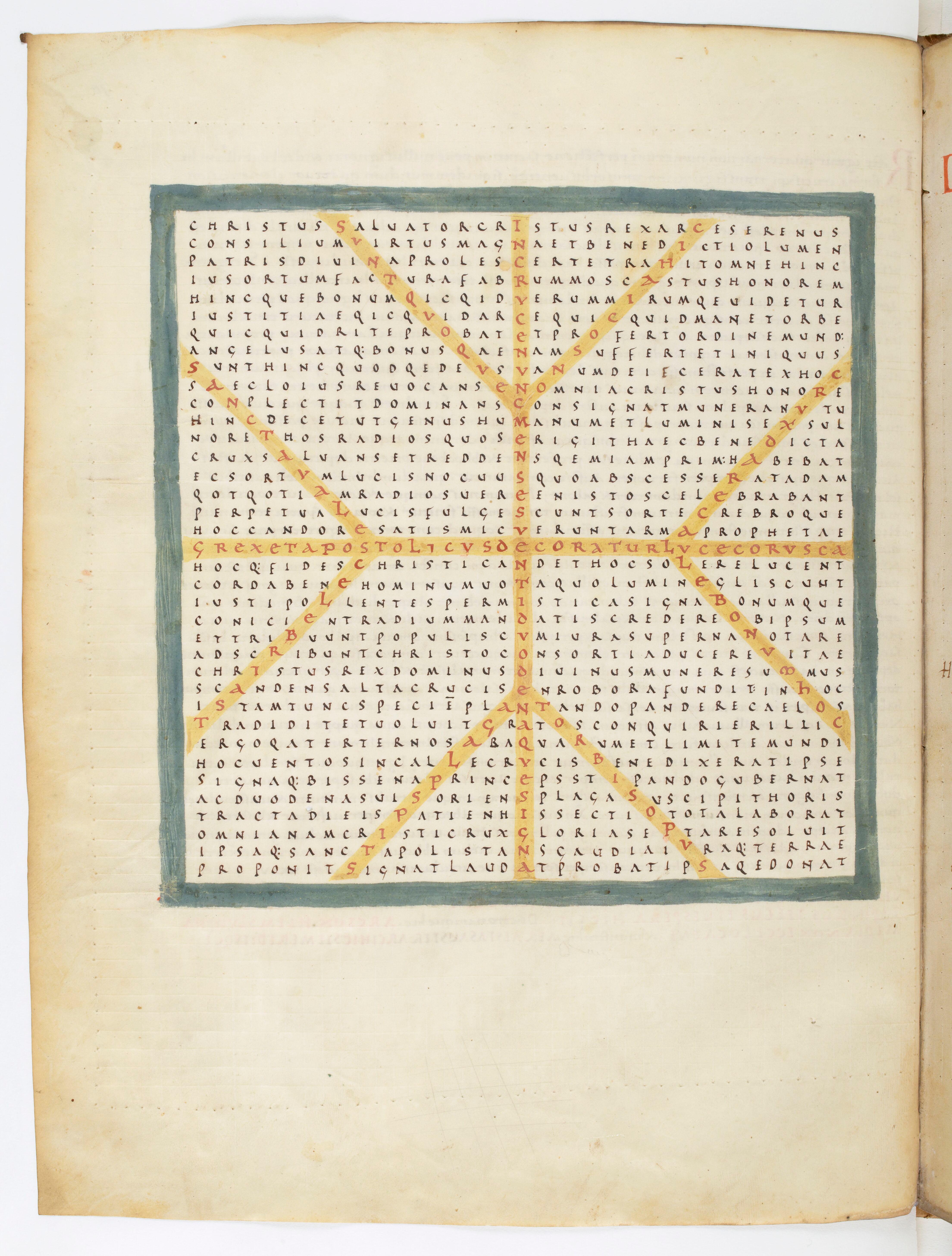 - Raban Maur, Louanges à la sainte croix, Croix, symbole de la création (nombre 12), Paris, BnF Latin 2422, f. 10v - jaune - Couche colorée - couche picturale