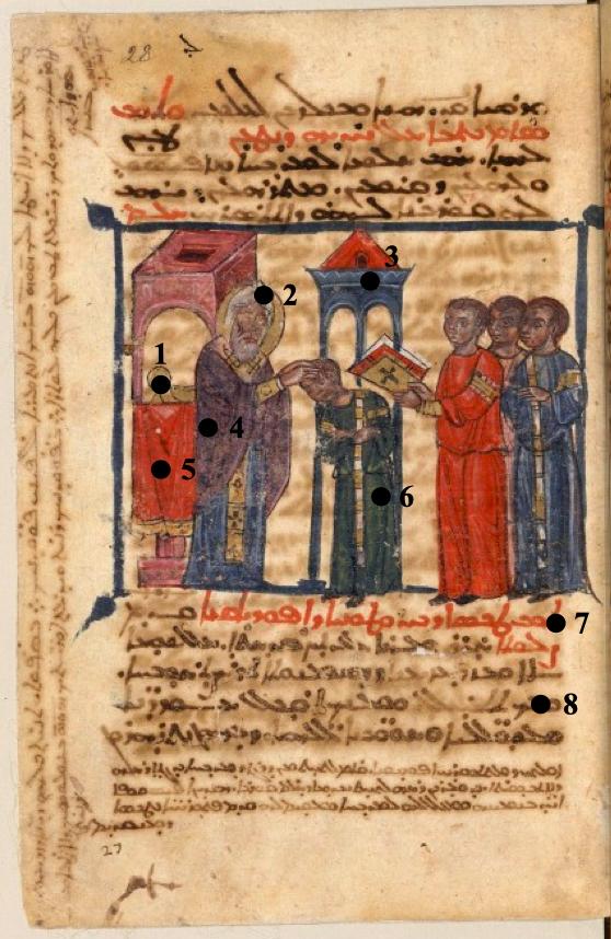 - Pontifical syriaque, ordination d'un sous-diacre, Paris, BnF, ms. syriaque 112, f. 28r - doré - Couche colorée - couche picturale