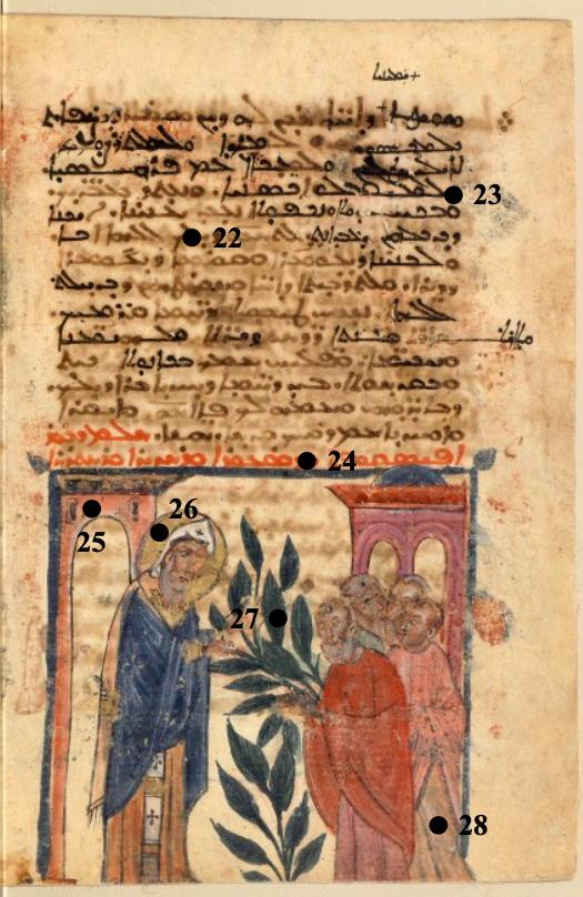 - Pontifical syriaque, bénédiction des rameaux, Paris, BnF, ms. syriaque 112, f. 68v - doré - Couche colorée - couche picturale